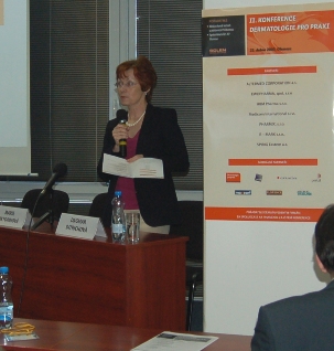 Roli odborné garantky opět přijala a na průběh celé konference dohlížela doc. Dagmar Ditrichová z Kliniky chorob kožních a pohlavních LF UP a FN Olomouc. „Chtěla bych poděkovat, jménem svým a jistě i Vás všech, společnosti Solen za pořádání již druhého ročníku konference Dermatologie pro praxi, která již v loňském roce oslovila řadu dermatologů a tím přispěla k tomu, že jsme se dnes sešli v mnohem hojnějším počtu. Jednotlivé bloky slibují řadu praktických otázek s mezioborovou problematikou zaměřenou na kožní projevy interních onemocnění, dětského věku a choroby dutiny ústní,“ přednesla ve svém úvodním projevu doc. Ditrichová.