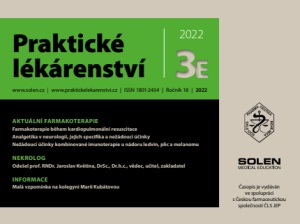 AKTUÁLNÍ FARMAKOTERAPIE Farmakoterapie během kardiopulmonální resuscitace Analgetika v neurologii, jejich specifika a nežádoucí účinky Nežádoucí účinky kombinované imunoterapie u nádoru ledvin, plic a melanomu NEKROLOG Odešel prof. RNDr. Jaroslav Květina, DrSc., Dr.h.c., vědec, učitel, zakladatel INFORMACE Malá vzpomínka na kolegyni Marii Kubátovou www.solen.cz | www.praktickelekarenstvi.cz | ISSN 1801-2434 | Ročník 18 | 2022 Praktické lékárenství 2022 Časopis je vydáván ve spolupráci s Českou farmaceutickou společností ČLS JEP